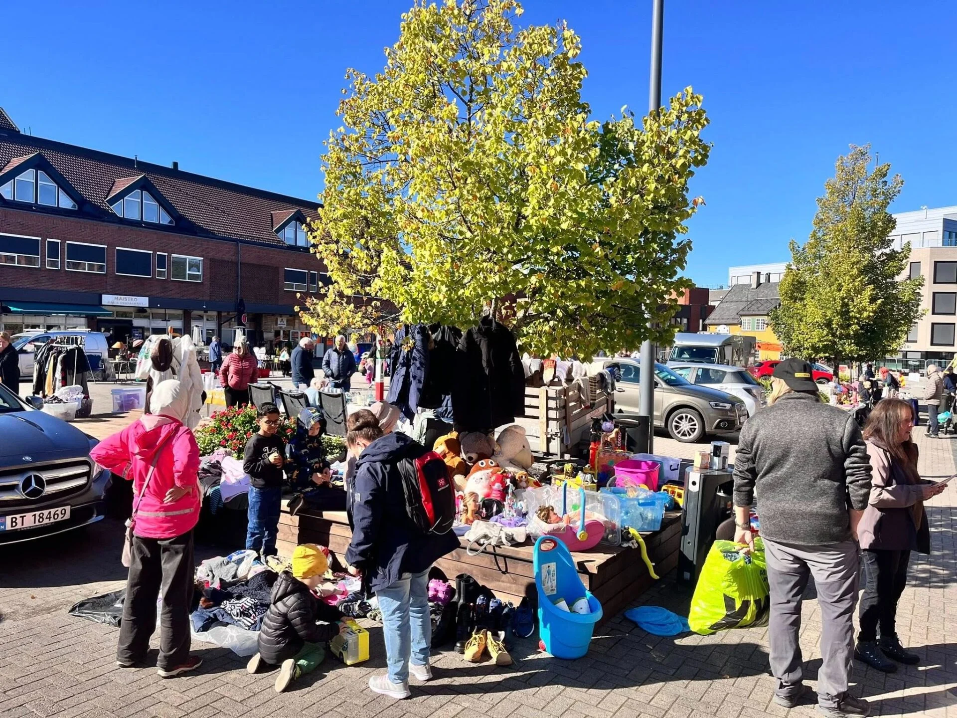 Store og små med alle slags salgsvarer, antikk, skrot og loftsrydding, leker, grønnsaker, klær, blomster, duppeditter og datter.